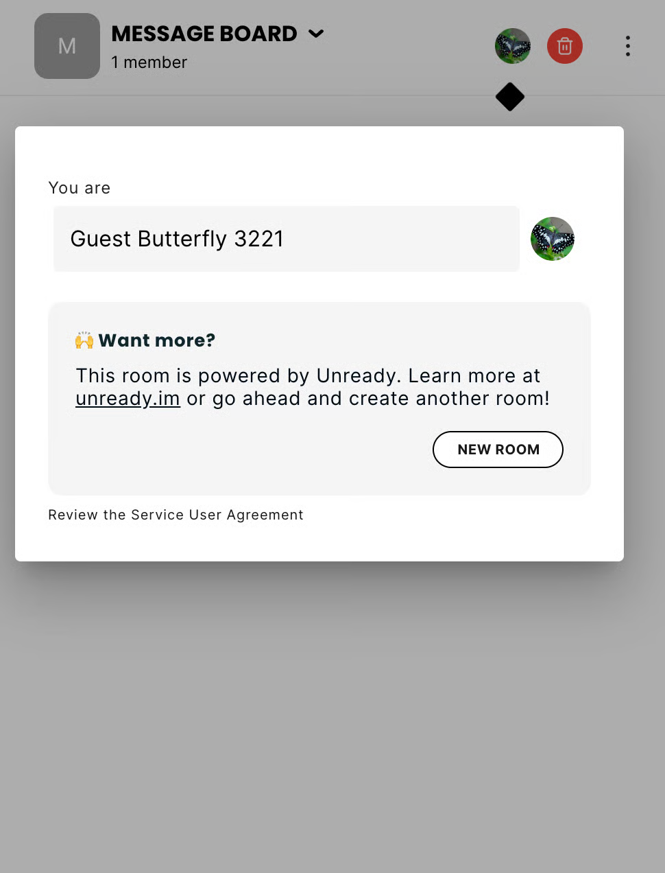 • Warning: If you delete the room, you will no longer have a local chat on your Butter Box. To get one back, you will have to flash a new image of the Butter Box software to your SD card.